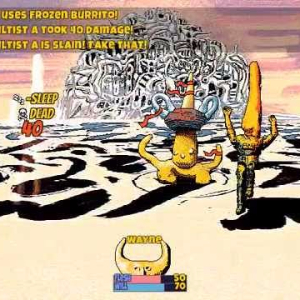 Hylics is a Japanese-styled RPG complete with food weapons, sausages, and randomly generated text.